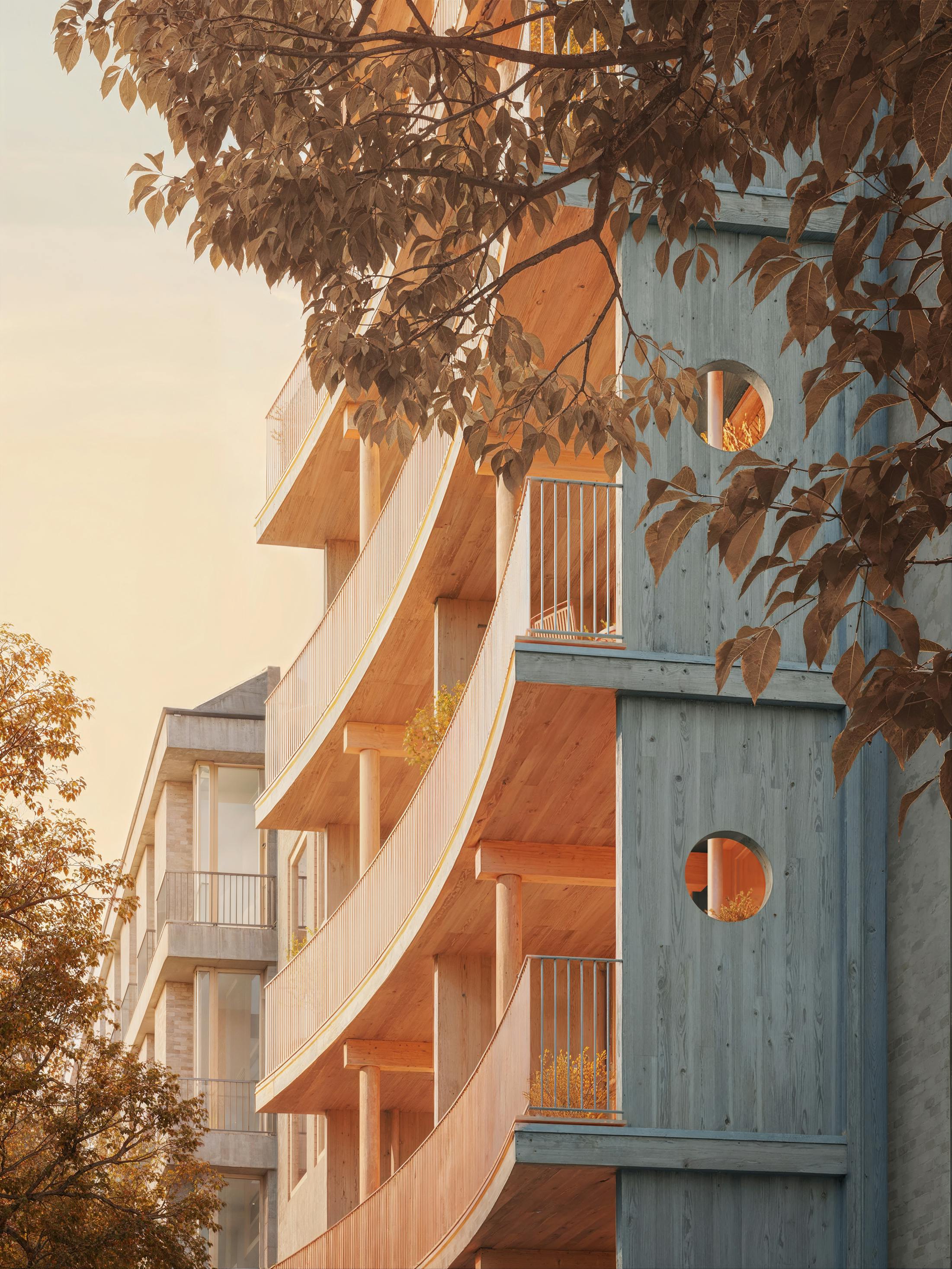 Our design proposal features large balconies that extend the living spaces outdoors, create an immersive connection to the courtyard, and provide shading to units.