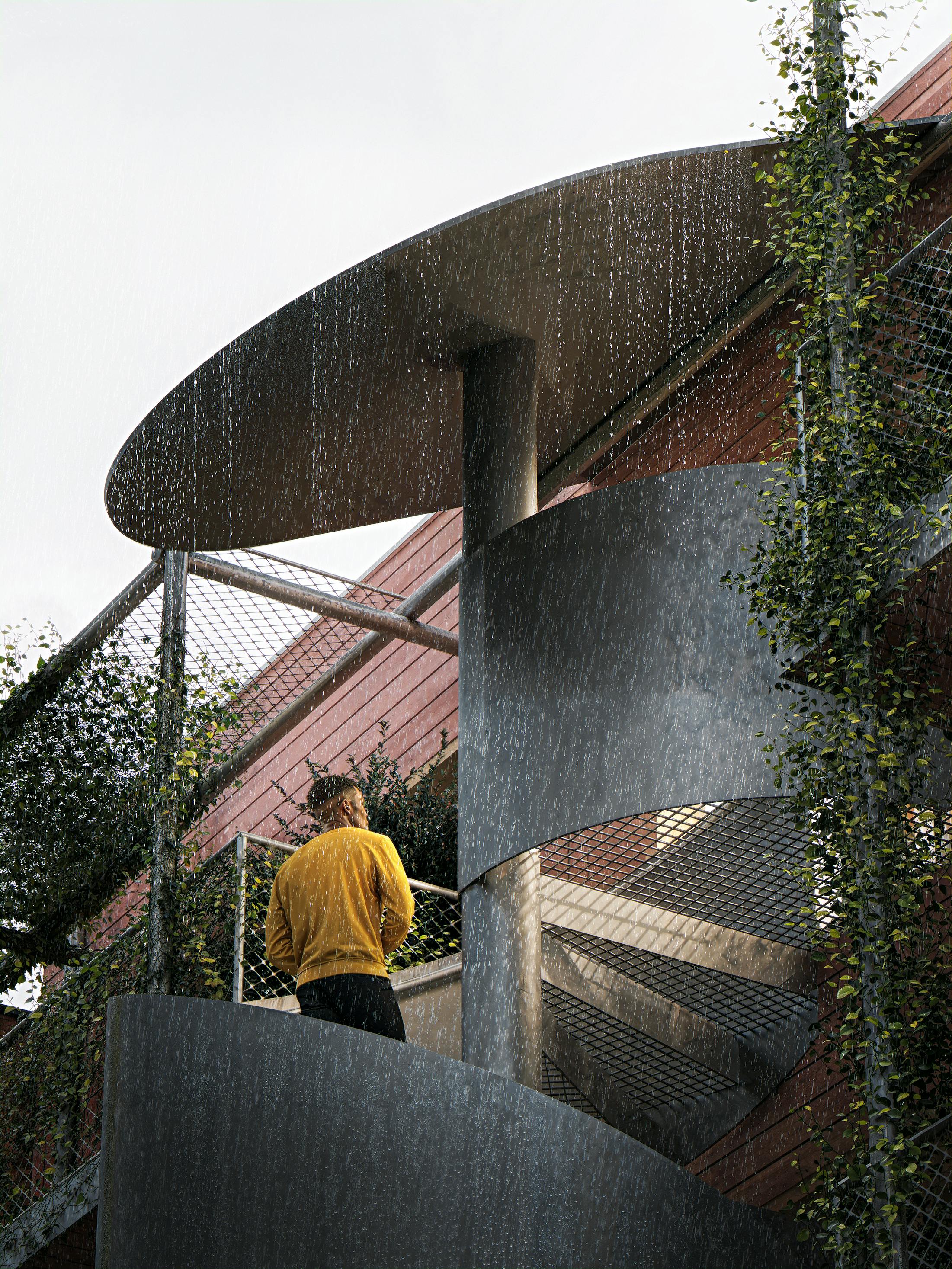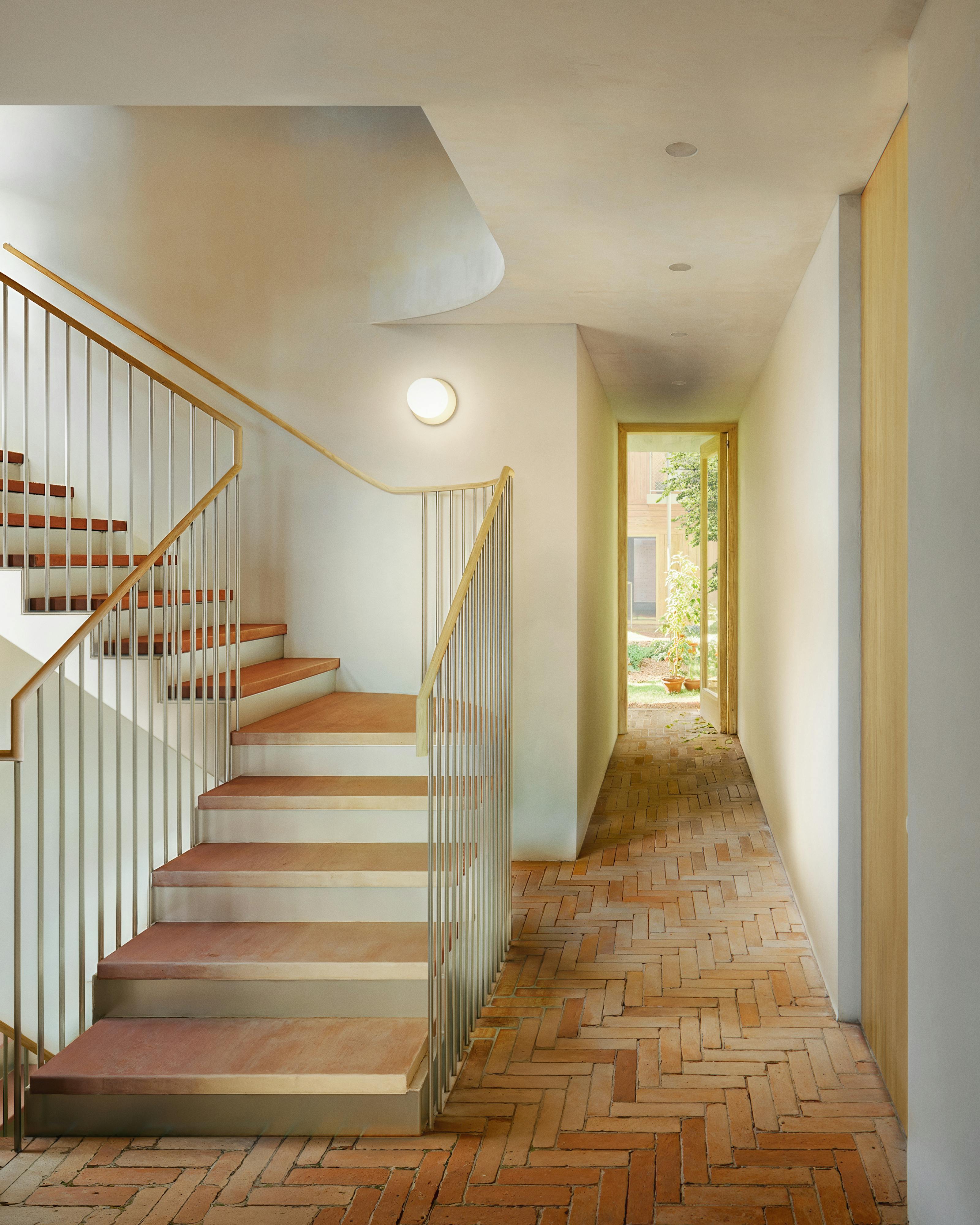 The single open stair, directly visible from both the building entry and from each unit’s front door, encourages those residents who can to use the stair as much as possible and increases the likelihood that neighbours will have the opportunity to see and get to know each other, fostering a greater sense of community.